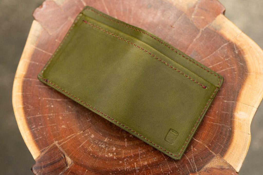 Leather Slim Minimalist Wallet - Olive Green Minerva
