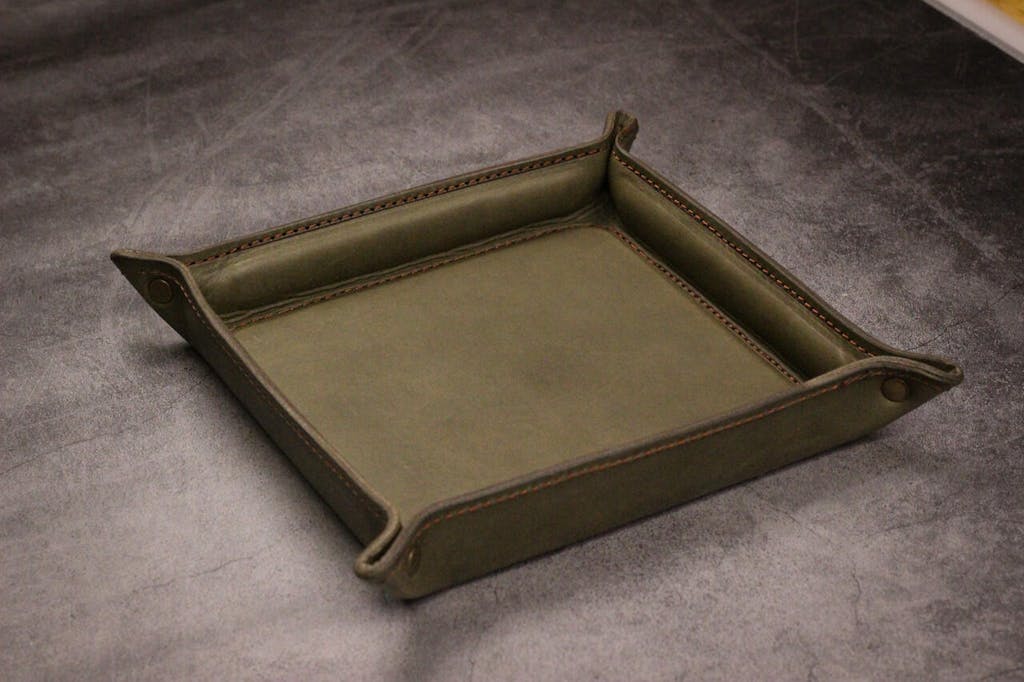 The Luxury Leather Valet Tray features premium, full-grain leather all around with acrylic padded inserts to keep it's rigid Rectangular shape. This tray is perfect for all of your EDC (everyday carry) items like your pocket knife, wallet, keys, phone, watch, rings and more. Keep it on your desk while you work to add a Luxury style, or by your bedside to hold your essentials at night.